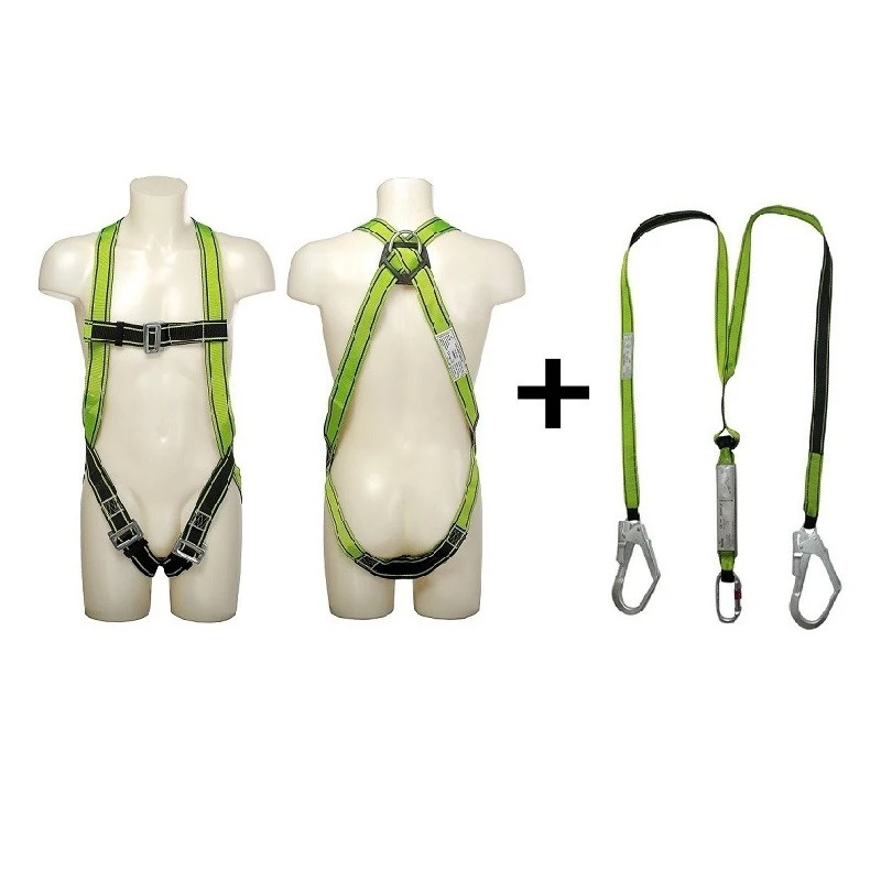 Full Body Harness With Twin Webbing Lanyard and Shock Absorber to be used with Vertical Anchorage System and construction industries. Fully adjustable shoulder and thigh straps, single dorsal attachment D-ring. Two chest attachment D-rings, ideally positioned sit strap for extended comfort. Twin Webbing Lanyard – Fluorscenet yellow color with shock absorber one side easy 308 karabiners & two Nickle plated scaffoldings with easy SH 60 Hook