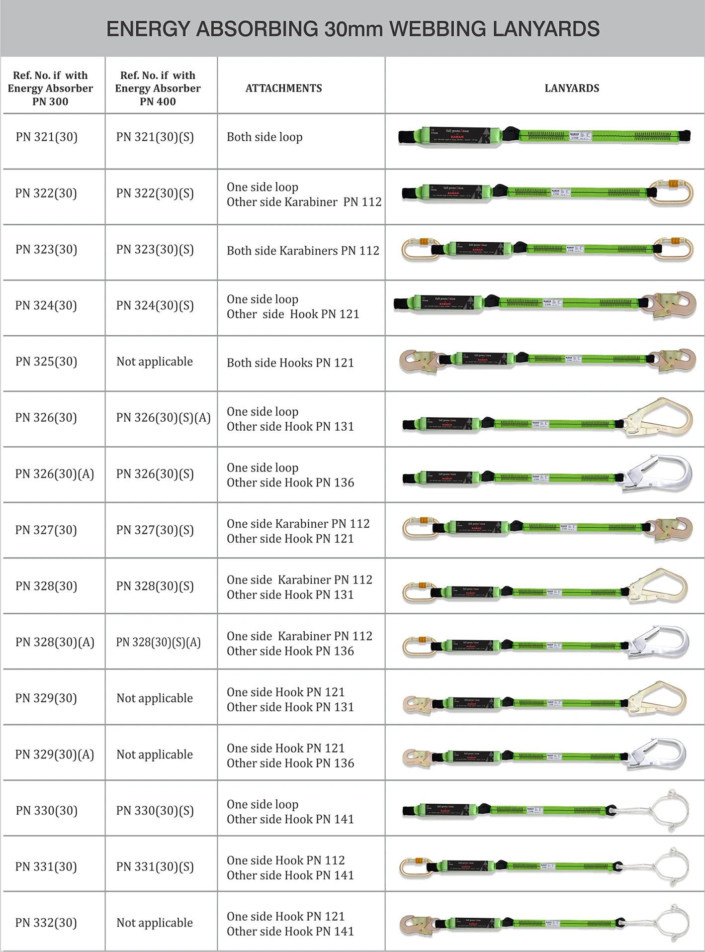 KARAM Energy Absorbing Webbing Lanyards (30mm)