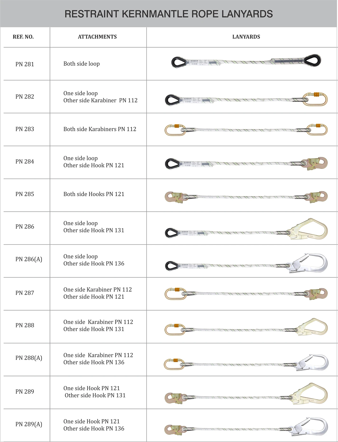KARAM offers a wide range of Kernmantle Rope Lanyards, having different configuration of connectors on the ends. | All KARAM Lanyards are also supplied with any other hook on special request. | They are available in lengths 1.0m, 1.5m, 1.8m, and 2.0m. |