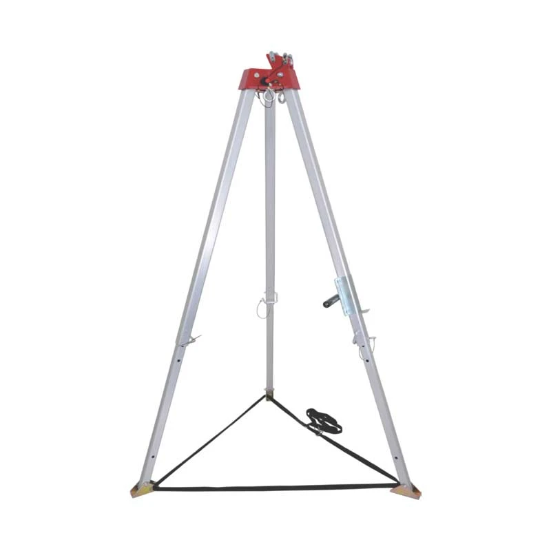 With two mounted pulley at the head of the tripod in the prolongation of the main leg for passing a cable.